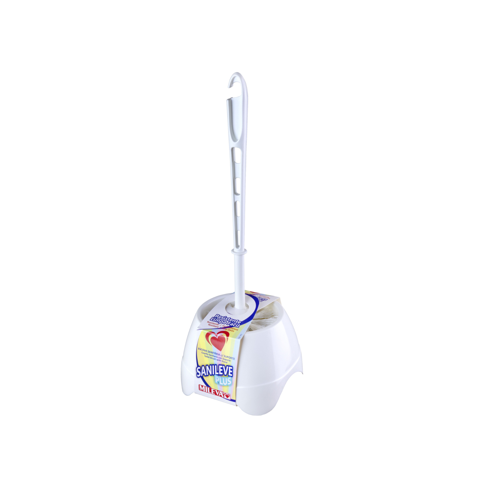 Escova sanitária com suporte, equipada com cerdas macias dispostas em 360°, garantindo uma limpeza completa e eficiente de vasos sanitários sem risco de arranhar as superfícies. Seu design inovador facilita o acesso a todas as áreas, proporcionando uma higienização impecável e sem danos.