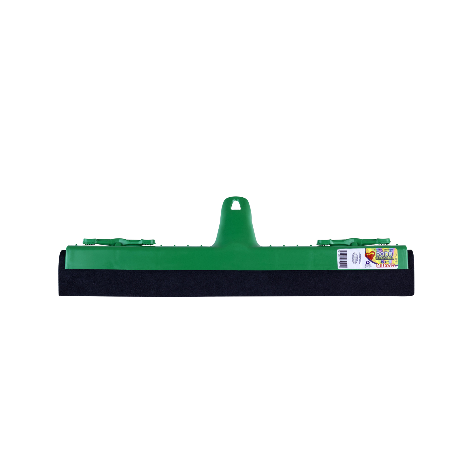 Rodo com 30 cm de extensão, com borracha dupla e macia que se adapta perfeitamente a qualquer superfície, removendo água e líquidos de forma eficiente. Seu suporte para prender pano facilita o uso, tornando-o ideal para limpar ambientes menores e alcançar cantos com precisão.