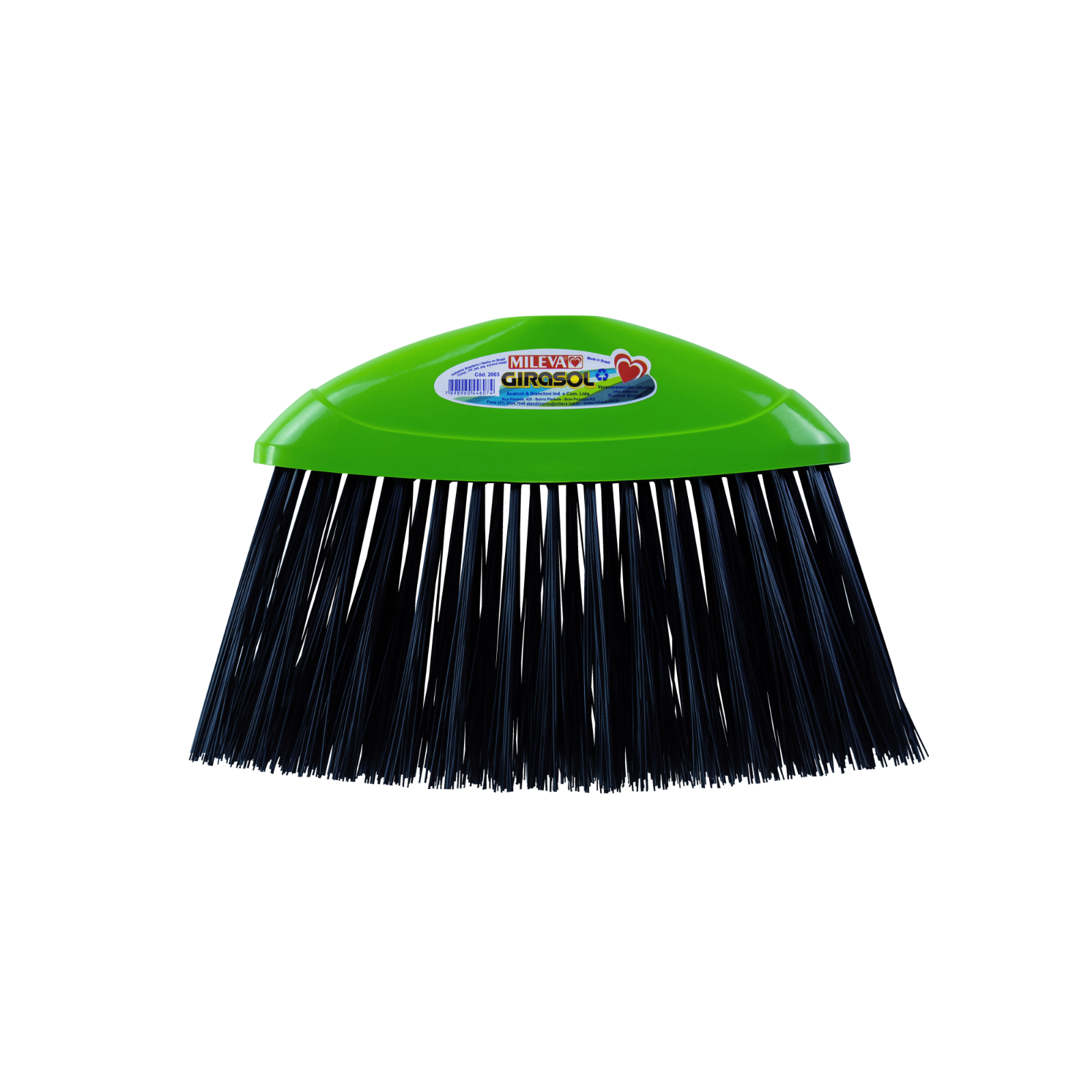 Vassoura com capa alta, equipada com cerdas rígidas e resistentes, perfeita para a limpeza de carpetes, pisos rústicos, pátios e calçadas. Sua estrutura robusta garante uma remoção eficaz da sujeira em superfícies mais exigentes.